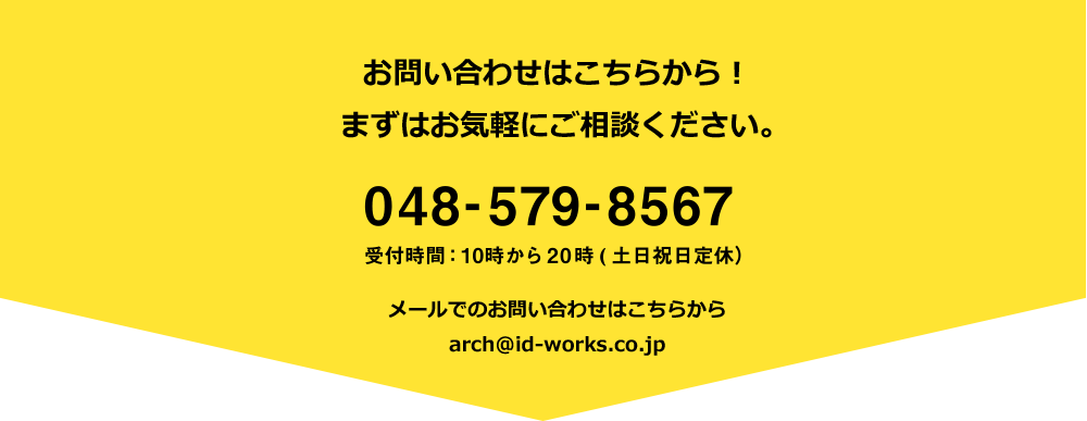 お問い合わせ先 / 電話番号:048-579-8567 メールアドレス:arch@id-works.co.jp
