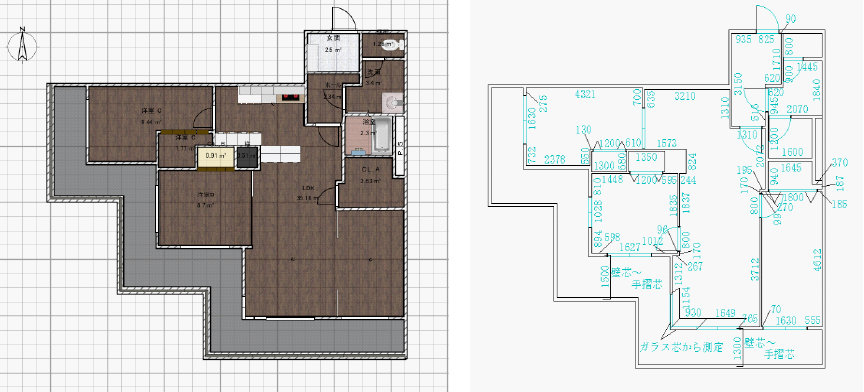 まずはじめに、設計図面や間取り図などリフォームをご予定されているお住まいの現在の状況がわかる情報を提示いただきます。リフォーム対象の住居の設計図面があればご提示ください。マンションであれば、簡易な間取り図でも結構です。そちらをもとに、弊社のスタッフが3Dモデルを制作し、WebサイトのURLとアクセスコードをお渡しします。